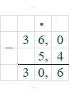 2. Вторым действием выполним сложение в скобках: $-5,4 + 36 = 36 - 5,4 = 30,6$.