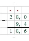 2. Далее выполним сложение в скобках: $-9,4 + 28 = 28 - 9,4 = 18,6$.