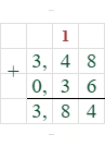 3. Третье действие - вычитание: $-3,48 - 0,36$. Это эквивалентно сложению двух отрицательных чисел: $-(3,48 + 0,36) = -3,84$.