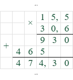 3. Третьим действием выполним умножение. Произведение отрицательного числа $(-15,5)$ и положительного числа $(30,6)$ будет отрицательным: $-15,5 \cdot 30,6 = -474,3$.