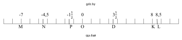 Таким образом, если расположить все точки на одной горизонтальной прямой в порядке их следования слева направо, мы получим следующую последовательность: M, N, P, O, D, K, L. Их координаты: M(-7), N(-4,5), P(-1,5), O(0), D(3,5), K(8), L(8,5).