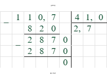 Выполним деление: $ 11,07 : 4,1 = 110,7 : 41 = 2,7 $.