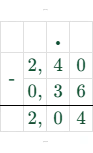 $P = 2,4 \div 0,15 = 240 \div 15$.