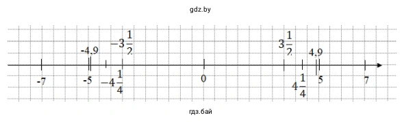 Теперь соберем все найденные уникальные числа и отметим их на координатной прямой. Полный список чисел: $-7; -5; -4,9; -4\frac{1}{4}; -3\frac{1}{2}; 0; 3\frac{1}{2}; 4\frac{1}{4}; 4,9; 5; 7$.