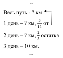 $\frac{6}{11}x - \frac{4}{11}x = \frac{2}{11}x$ км.