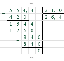 1) $55,44 : 2,1 = 554,4 : 21 = 26,4$