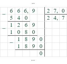 1) $66,69 : 2,7 = 666,9 : 27 = 24,7$