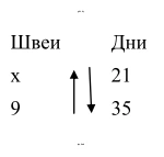 Поскольку зависимость обратная, то отношение количества швей будет равно обратному отношению количества дней: $\frac{9}{x} = \frac{21}{35}$