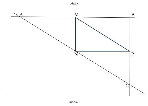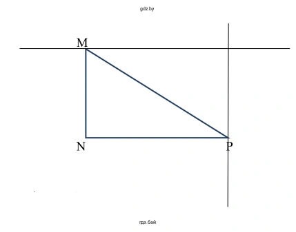 Начертим прямоугольный треугольник $MNP$ с прямым углом при вершине $N$, то есть $\angle MNP = 90^\circ$.
