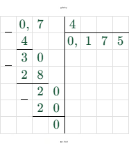$0,7 : (-4) = -0,175$