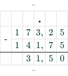 $173,25 \text{ т} - 141,75 \text{ т} = 31,5 \text{ т}$.