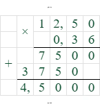 $12,5 \cdot \frac{36}{100} = 12,5 \cdot 0,36 = 4,5$ т.