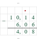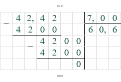 4) $-4,242 : 0,7 + 3,9 \cdot (8 - 5,4)$