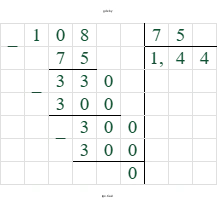 3) −108 : 75 − (2,43 + 3,9 · 0,2);